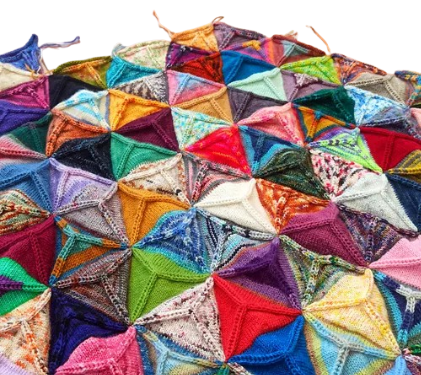 The shawl and beret are currently on the needles, these are the pattern pics! The scrappy blanket is my own, it's a slow project